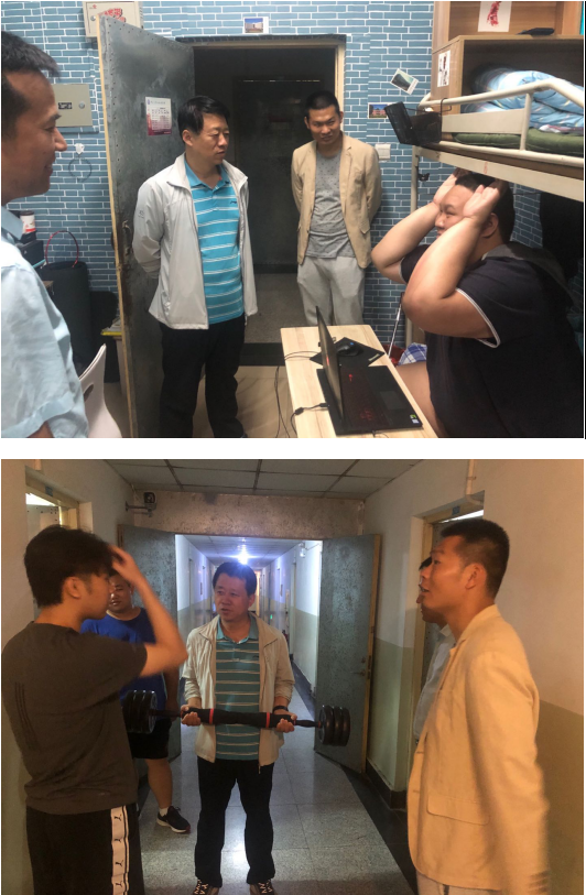 院领导首先对回字楼进出操场出入口、回字楼宿舍门禁、监控、楼道照明、楼道吊顶、楼道窗户、楼内卫生等方面进行了重点检查。随后走进每一层学生宿舍,“同学们都在宿舍吗?”“大家在宿舍都做什么呢?”“要加强通风,宿舍卫生需要大家共同维护!”临走前,院领导嘱咐宿舍各位成员要进一步加强宿舍安全、节约意识,同时勉励大家珍惜宿舍友情,互帮互助,共同创造宿舍新氛围。