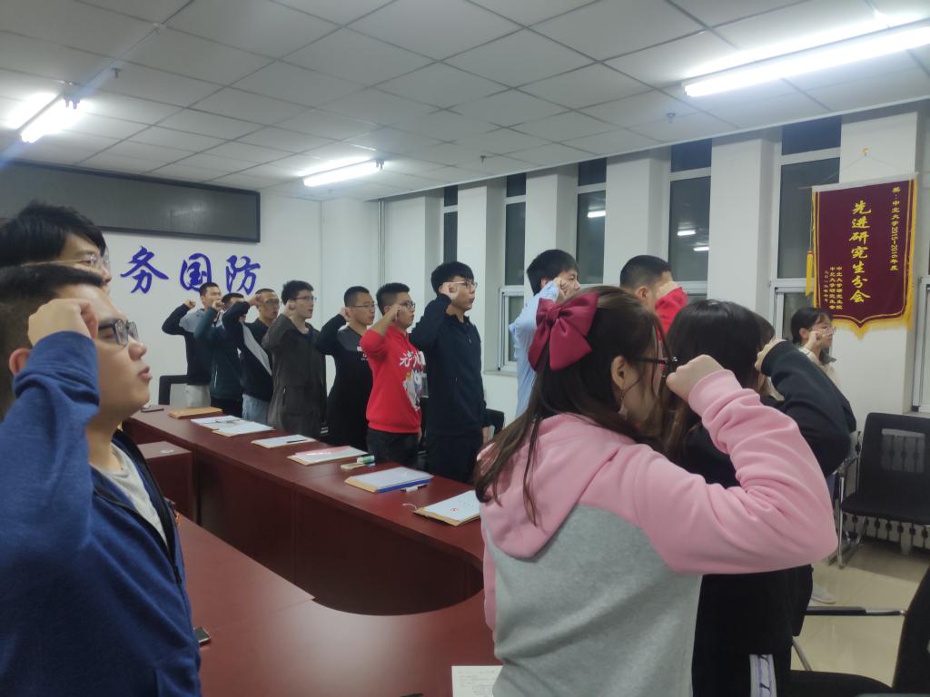 随后,由赵然廷同志宣布宣誓仪式结束并表达对转预同志的期望。接着展开接收新党员见面会,先由新加入党支部的邢培岩老师做自我介绍及发表讲话。邢老师主要讲述三大优良作风,即理论联系实际,密切联系群众,批评与自我批评。其中在批评作风上老师以牢记入党誓词为例,严格要求自己,也警戒党员们要正视这一点。在此之后,9名新接收党员逐一作自我介绍。