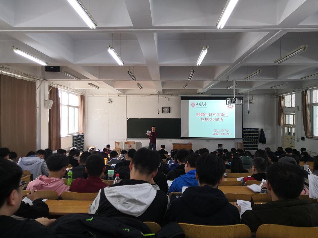 在10302H召开2020级研究生新生入学教育,2020级全体研究生新生参加。