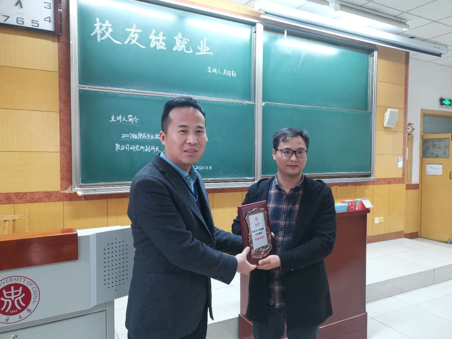 最后,面对学弟学妹的提问,他毫无保留的解答了他们的疑惑,使同学们对于弹药专业有了更加清晰的认识。会后,刘光副书记对本次讲座作出总结,指出新入学的同学容易陷入对未来的迷茫,并鼓励大家要明确目标,积极向上,不负韶华,不负青春,并为吴同勤校友颁发了“职业发展与就业创业校友讲师团特聘讲师”证书。