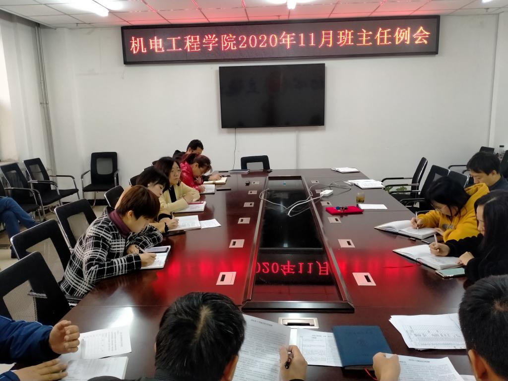 会上,学生科科长张丽花老师围绕11月份重点工作做了规划,提出了明确的要求,分为以下六个方面,一、安全教育工作;二、大学生思想政治教育工作;三、学风建设工作;四、重点关注学生的教育管理工作;五、毕业生重点强调工作;六、其它日常工作。院团委书记李晶晶老师汇报了学院近期青年大学习情况,需要班主任老师去抓好班级青年大学习,规划好班级团日活动。教学副院长李世中老师谈到学生创新学分在实践课上有了新的安排,多门课程保障学生创新学分的获取。