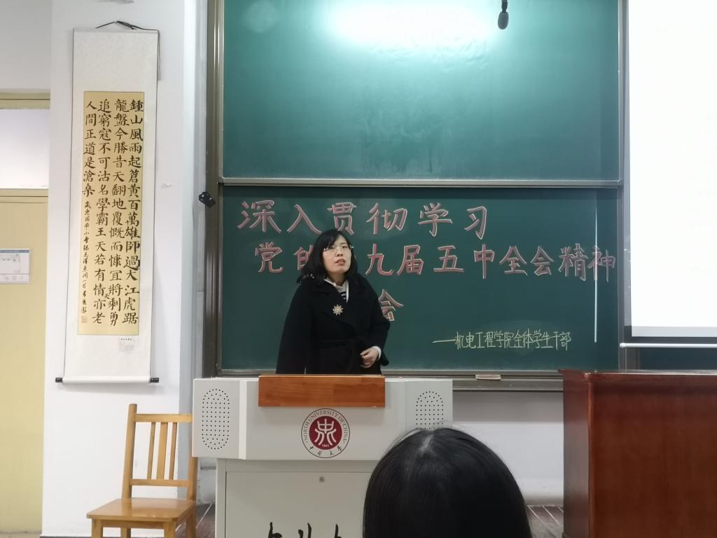 随后,在同学们中选出代表来发表,谈到他们对十九届五中全会的心得体会,每个人都有着自己独到的见解。