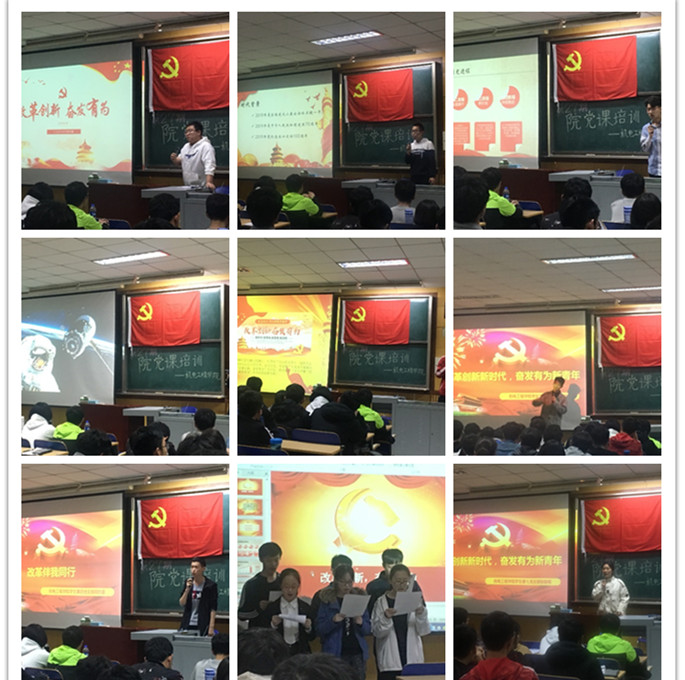 在09103H教室开展了第27期院党课培训之“改革创新 奋发有为”大讨论。此次培训以讨论形式展开,由孟浩东同志主持,王荣晟、席文韬、米洋锐、周忠康、常轩豪、贺亮亮、张智程七位同学代表依次上台发言,随后大家就发言内容展开了学习与讨论。期间,18010341班六名同学为大家带来了朗诵——《继往开来》。